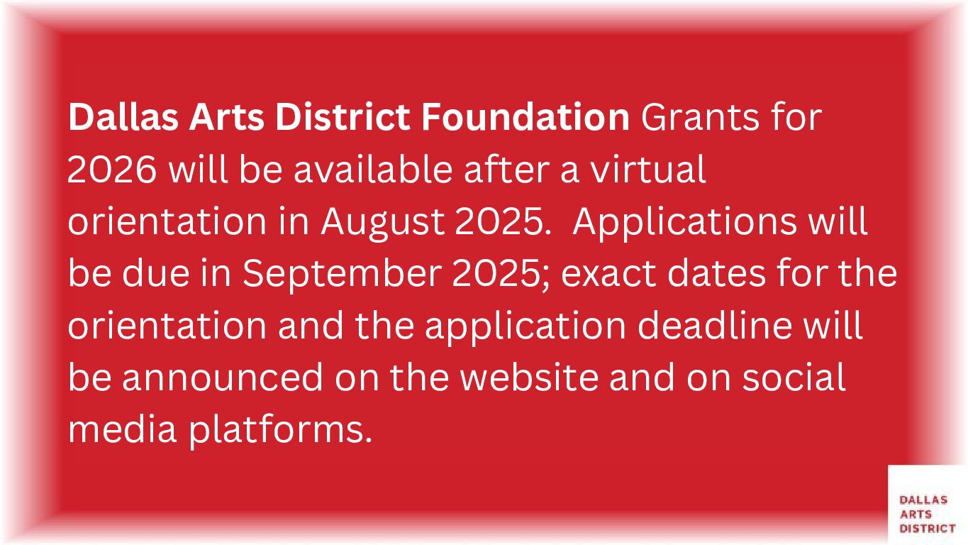 Information from our 2026 Dallas Arts District Foundation Grants Townhall is available to view here.